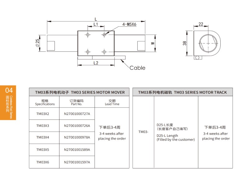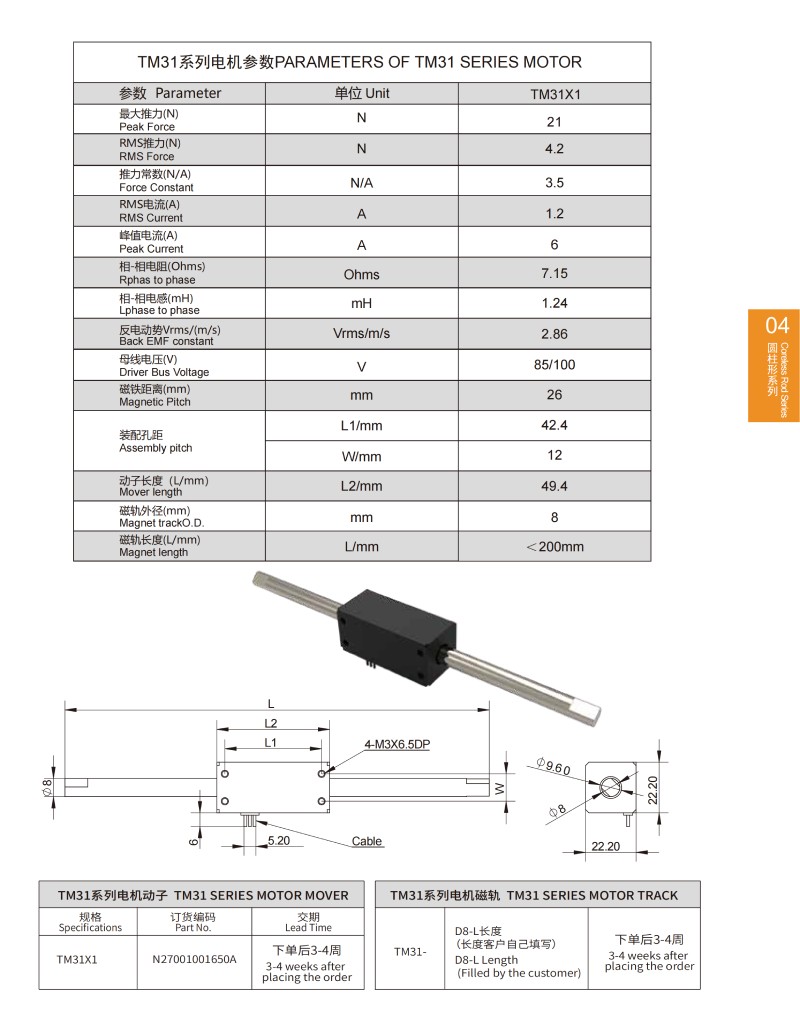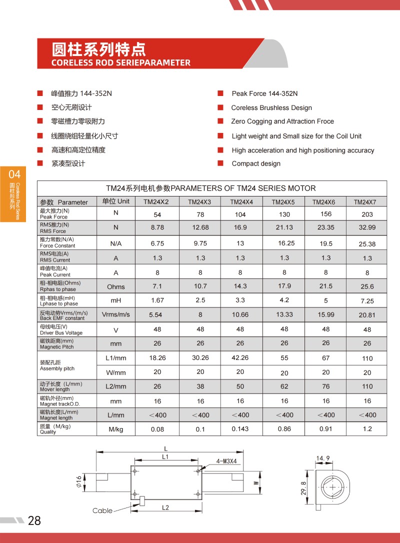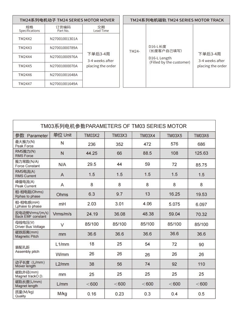 TM 24系列圓柱形直線電機參數(shù)PARAMETERS OF TM 24 SERIES MOTOR | |||||||