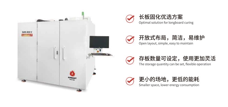 SVR-V系列在線式垂直固化爐,整機設計全新升級,更加人性化。采用分段加熱、獨立溫控,加熱更高效,控溫更精準。運輸系統穩定可靠,操作維護便捷。全自動進出產品,智能化生產,生產效率高。設備體積小,有效縮短產線長度。SVR-V系列垂直固化爐對于長板的固化應用優勢更加明顯,可容納長達1200mm的產品。可定制百級、千級、萬級高潔凈度設備,滿足無塵生產工藝要求。