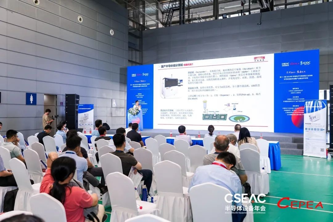 在大會(huì)的“新品發(fā)布”專場(chǎng),日東科技研發(fā)經(jīng)理王永剛,現(xiàn)場(chǎng)發(fā)布了新款半導(dǎo)體封裝設(shè)備“IC貼合機(jī)WBD2200 PLUS,并與觀眾分享了半導(dǎo)體封裝設(shè)備的行業(yè)背景、國(guó)產(chǎn)化發(fā)展現(xiàn)狀。