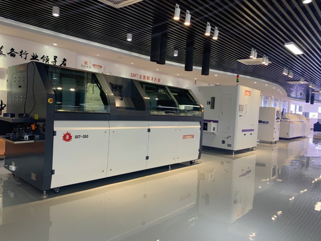 (8)清洗設備的作用是將貼裝好的PCB上影響電氣性能的物質或對人體有害的焊接殘留物除去,如助焊劑等。若使用免清洗焊料,則可以不用清洗。清洗所用設備為超聲波清洗機和專用清洗液,其安裝位置不固定,可以在線,也可不在線。