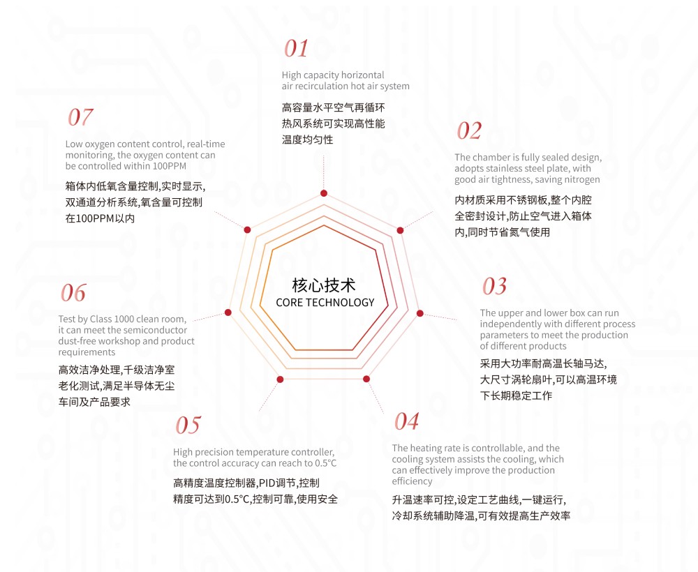 1、 高容量水平空氣再循環熱風系統可實現高性能溫度均勻性;