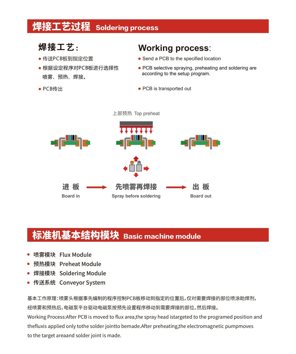 噴霧模塊 | 預熱模塊 | 焊接模塊 | 傳送系統 |