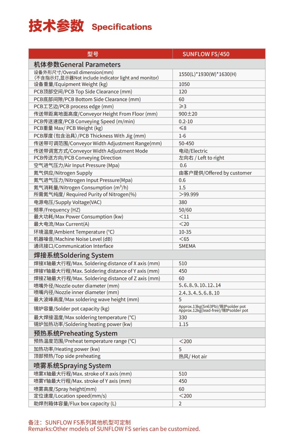 備注:SUNFLOWFS系列其他機型可定制 |