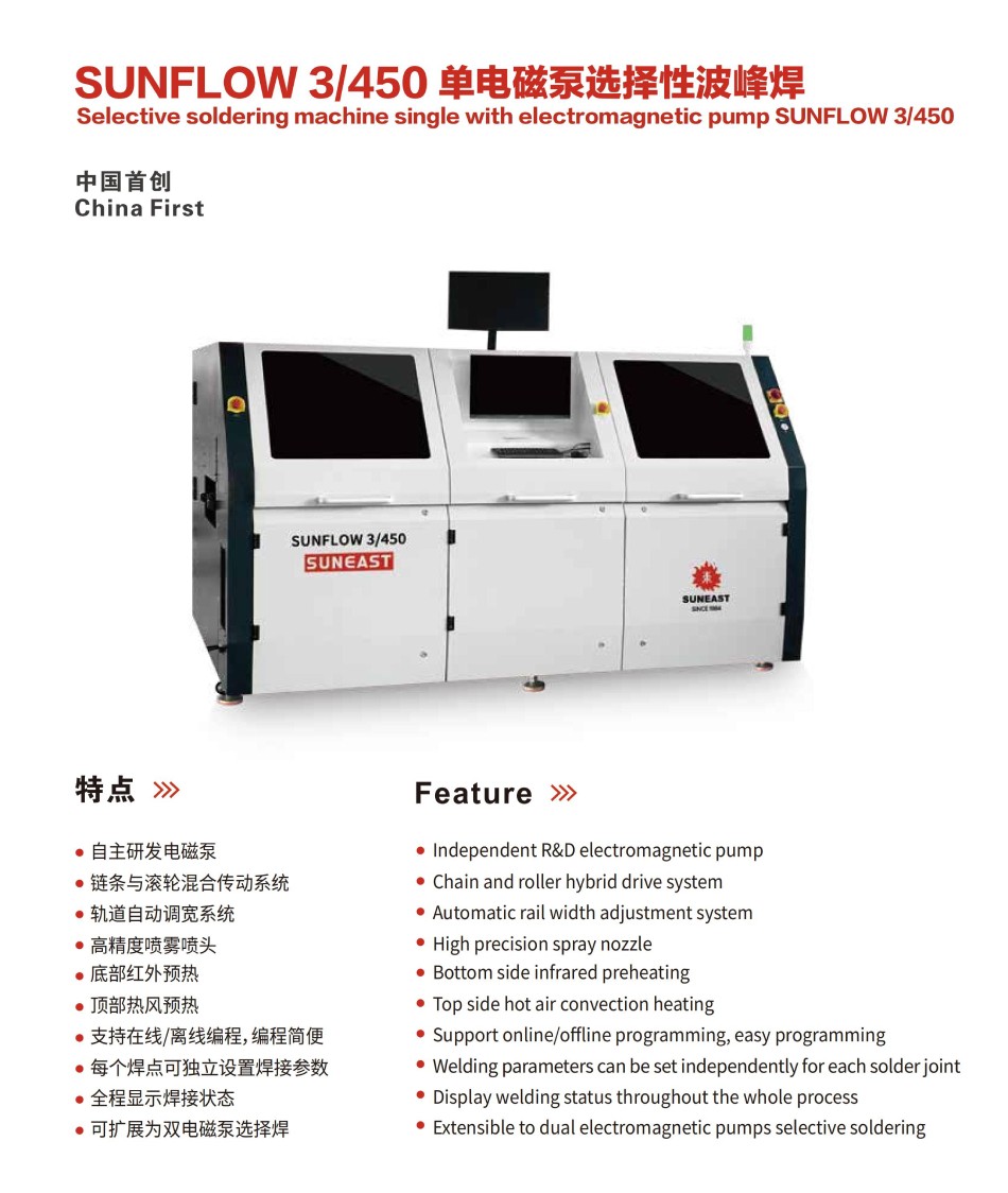 基本工作原理:噴霧頭根據事先編制的程序控制PCB板移動到指定的位置后, 僅對需要焊接的部位噴涂助焊劑,經噴霧和預熱后,電磁泵平臺驅動電磁泵按預先設置程序移動到需要焊接的部位,然后焊接。