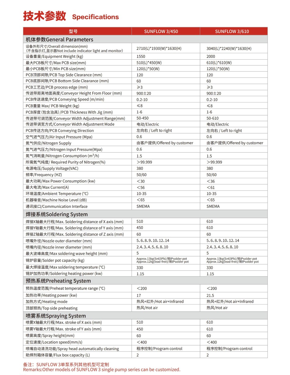 備注:SUNFLOW3單泵系列其他機型可定制 | ||